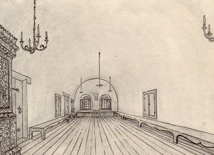 Повалушу старались по возможности лучше осветить. Однако окна тогда были маленькими, а их "оконничные станки" и слюдяные узорные оконницы задерживали много света. Ниже подоконников кругом у стен шли давки, резные ножки которых врубались в деревянный пол. Какую-то часть повалуш занимали обширные столы.
